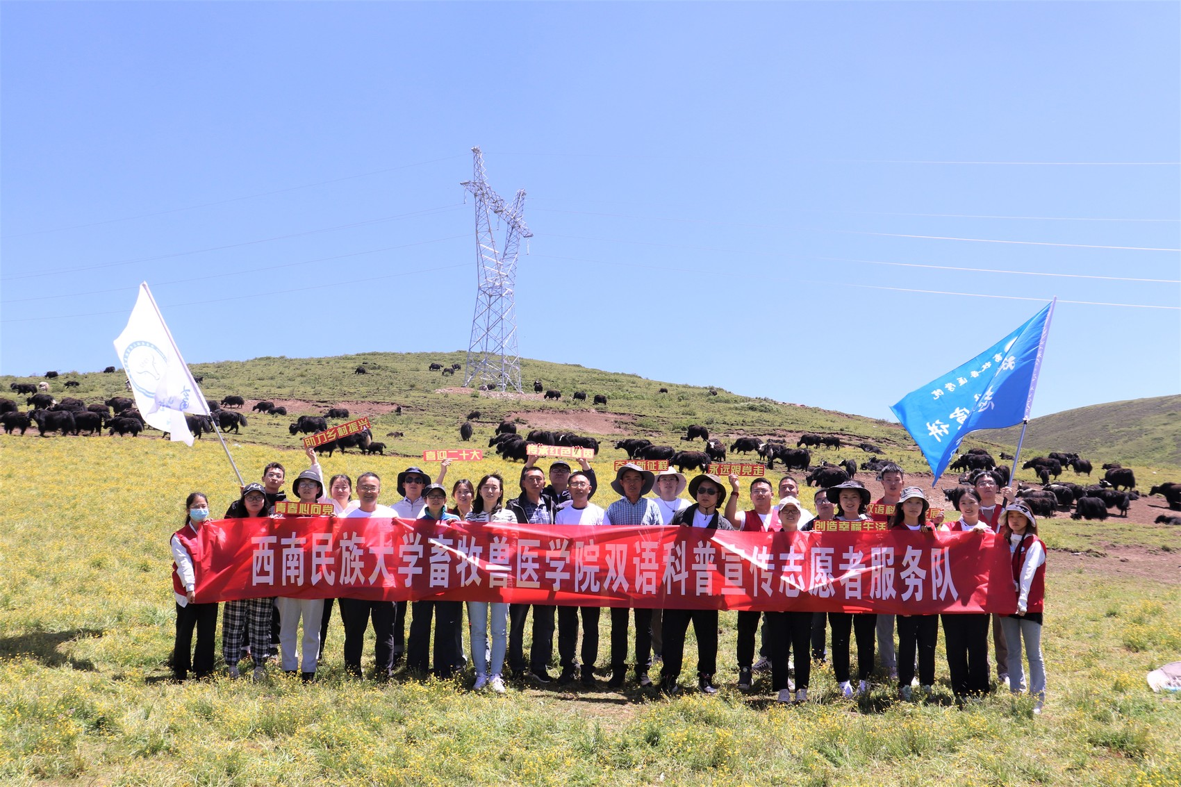 学院党委将铸牢中华民族共同体意识融入育人全过程,构建起以科研、实践、服务与文化育人“四链融合”为核心的多元一体化牧医“三全育人”体系,塑造学生正确的国家观、历史观、民族观、文化观与宗教观,帮助学生牢固树立中华民族共同体意识、科技兴牧的专业意识以及服务青藏高原的担当意识。