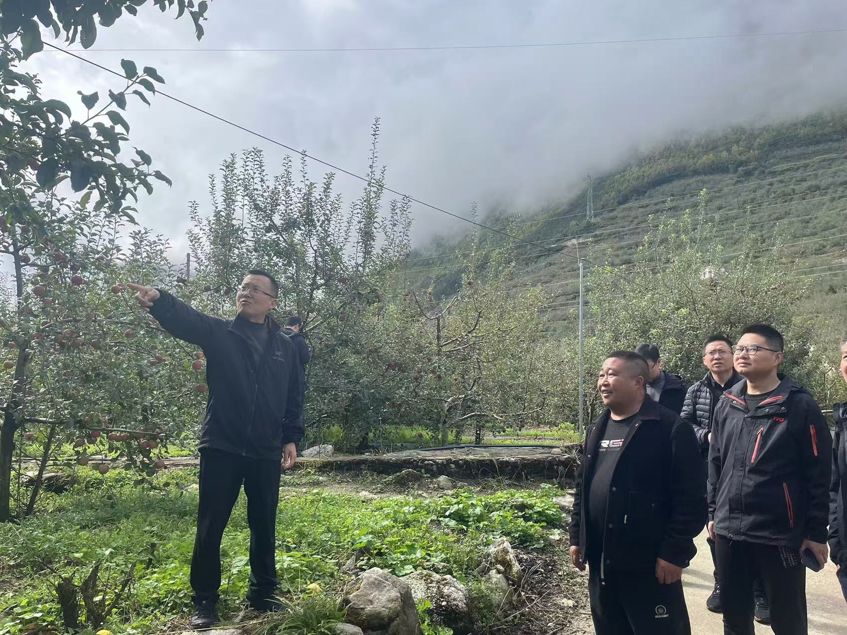 浙江帮扶工作队助力甘孜当地产业发展,图为工作队考察达杠苹果基地。